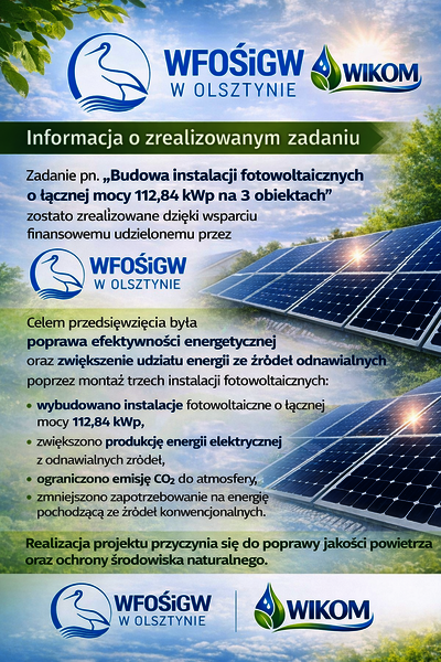 „Budowa instalacji fotowoltaicznych o łącznej mocy 112,84 kWp na 3 obiektach”
